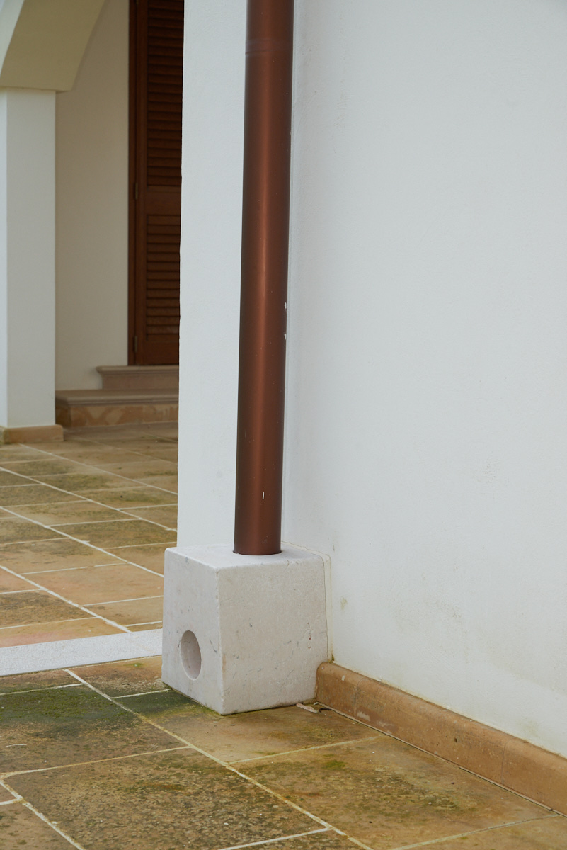 È stato scelto il marmo per la realizzazione dei blocchi terminali delle grondaie: l’utilizzo di un materiale così pregiato per un particolare tra i più sottovalutati e meno valorizzati, rende i pluviali dei veri e propri elementi d’arredo di grande effetto ed impatto estetico.