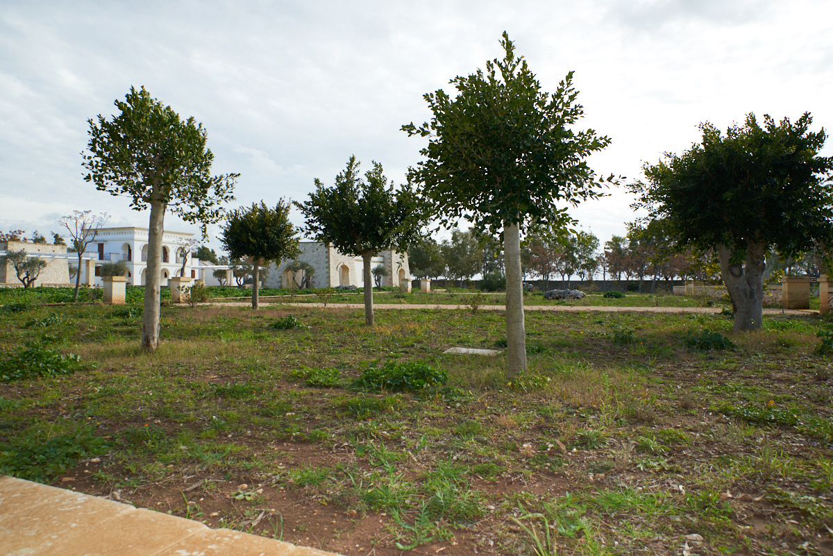 Il progetto estetico della struttura mira a riproporre le icone stilistiche che caratterizzano l’interno territorio salentino: l’impostazione del corpo padronale, ad esempio, richiama quella delle antiche masserie fortificate, così come le torri delle unità abitative rievocano gli avamposti di avvistamento disseminati per tutto il litorale e le depandance ricordano il pajaro, la tipica costruzione rurale realizzata con la tecnica del muro a secco.